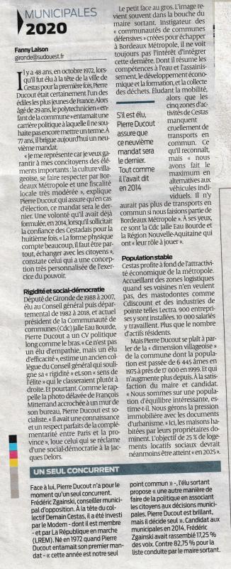 Le sujet est ici, et il s’agit uniquement de cela, de parler de notre communauté de communes. L’article de Sud-Ouest fait état du sentiment de Monsieur DUCOUT à l’égard de la communauté de commune défensive qu’il a créé avec Canéjan dans le seul but de ne pas être obligé d’intégrer la CUB. Il en explique l’inutilité et, de fait, l’a sabordé dès sa création. Nous vous rassurons, les élus de Canéjan ont plus que largement contribué à ce sabordage et, comme nous l’avons souligné durant 5 ans, la seule utilité de cette communauté de commune est d’être une vache à lait pour des élus qui l’ont enterré encore vivante.